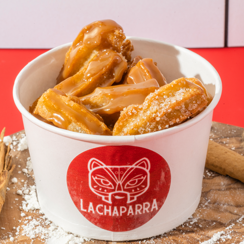 120 gr. de mini churros con salsa de arequipe o chocolate.