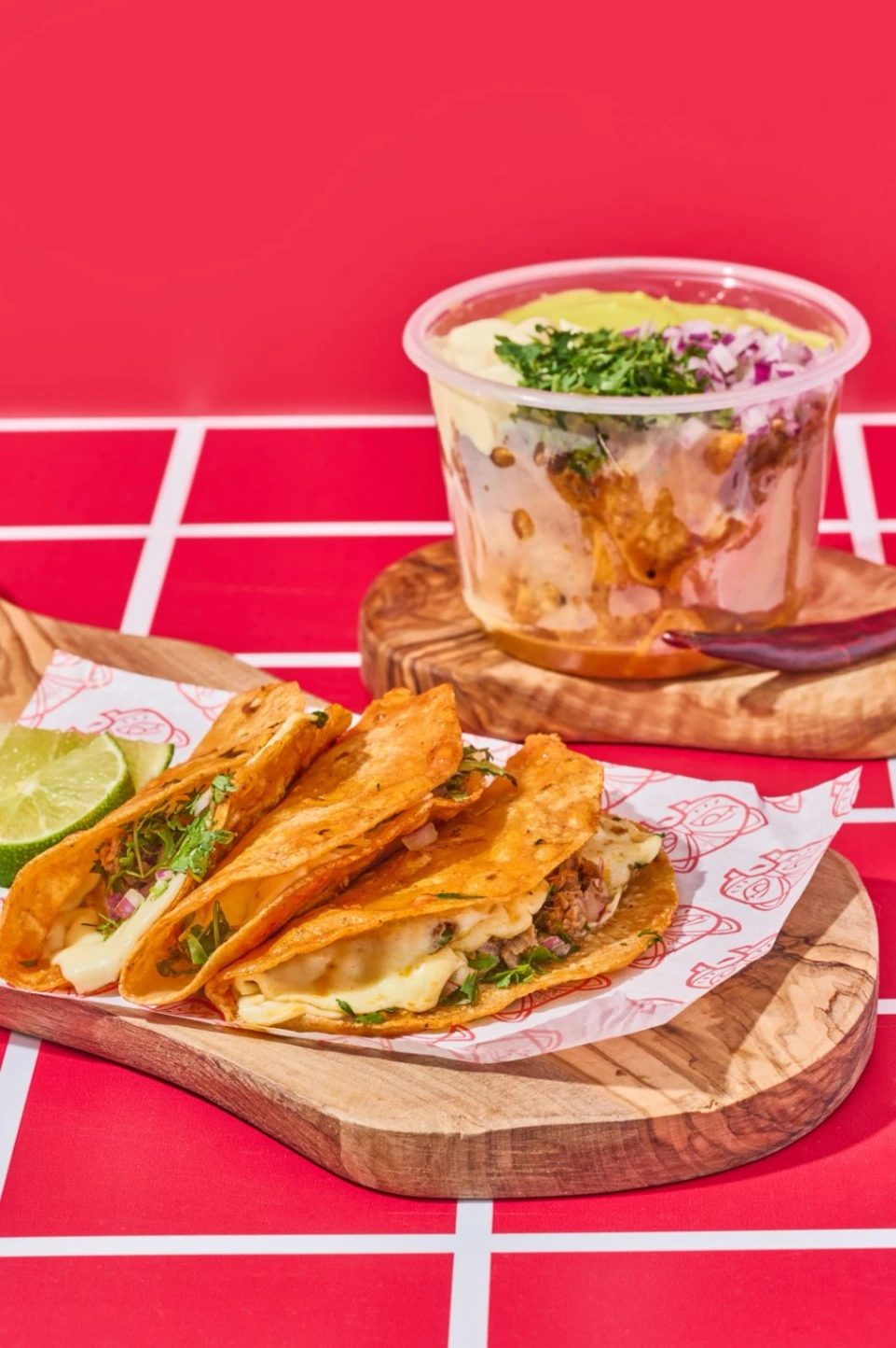 1 Mini chaparramen caldo de birria con cilantro 14 oz, aguacate en trocitos, cebolla cilantro y carne de res con noddles + quesabirria x3 tortilla de maíz de 13 cm con cebolla, cilantro, carne de res bañada en caldo